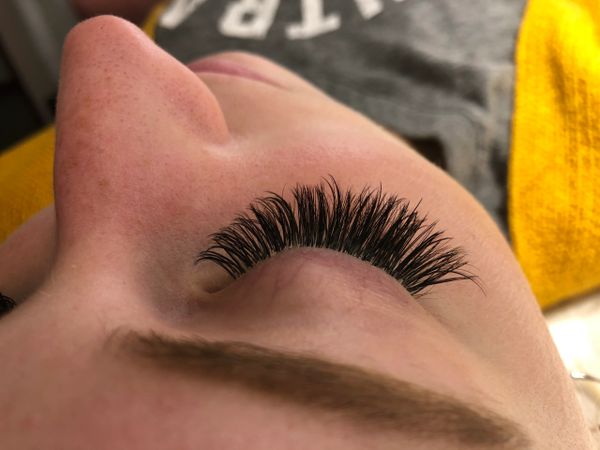 Volume extensions are 3 -8 lashes per lash to create the perfect fluffy look. Adding the perfect depth and texture to your eyes to make them stand out.